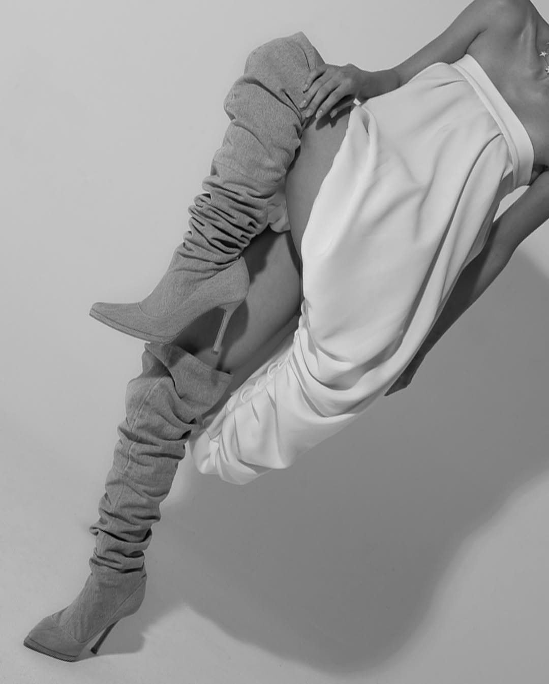 Denim reimagined with couture discipline, swim with architectural poise, and footwear that balances line and lift. Matte textures, precise cuts, and finishes that reward a closer look.